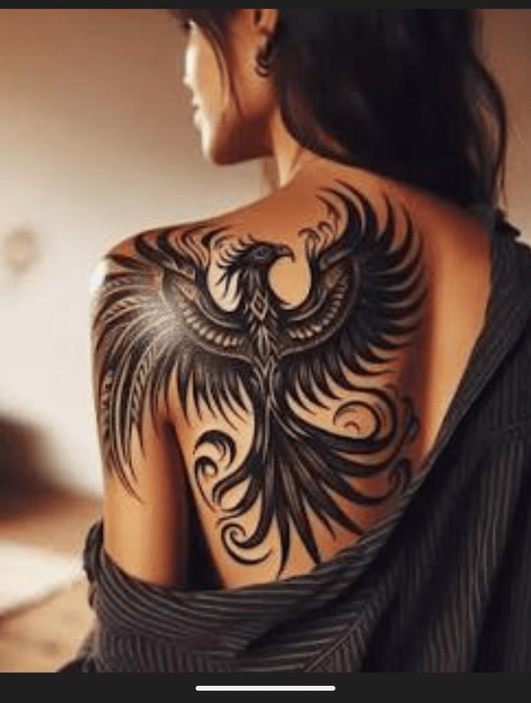 I would like a phoenix because it represents rebirth, renewal, and transformation. Personally I have risen from the ashes of my life challenges and I emerged stronger than before. The tattoo would represent my resilience and strength. It would remind me of what I have overcome.